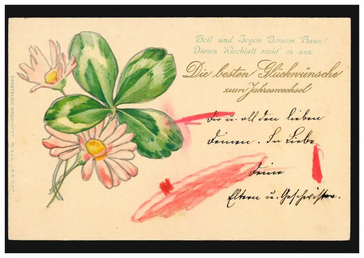 Carte de pré-repas Nouvel An Poème Trèfle à quatre feuilles, MUNICH selon LA SÉRIE DE TÉGERN