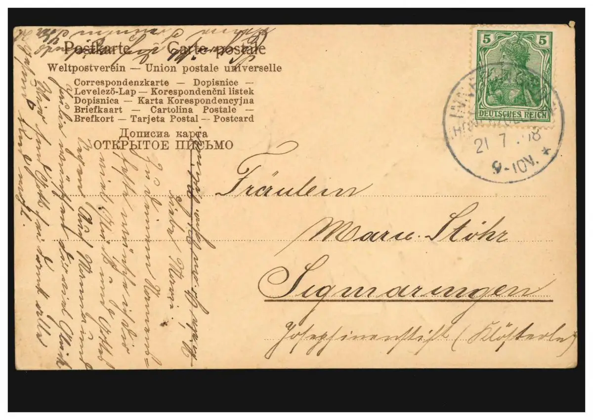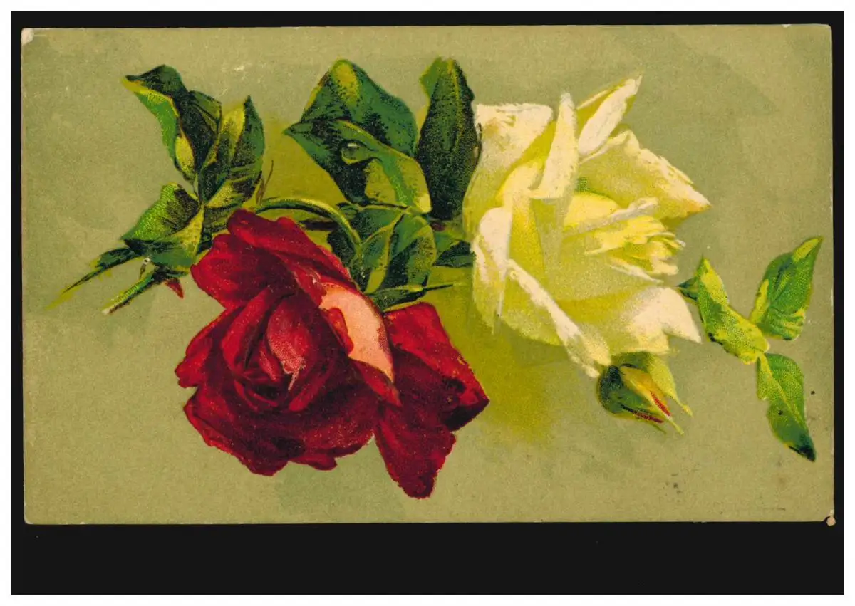 Carte de pré-rose Rose blanche / Rosé rouge, INNERINGEN (HOHENZOLLER) 27.7.1908