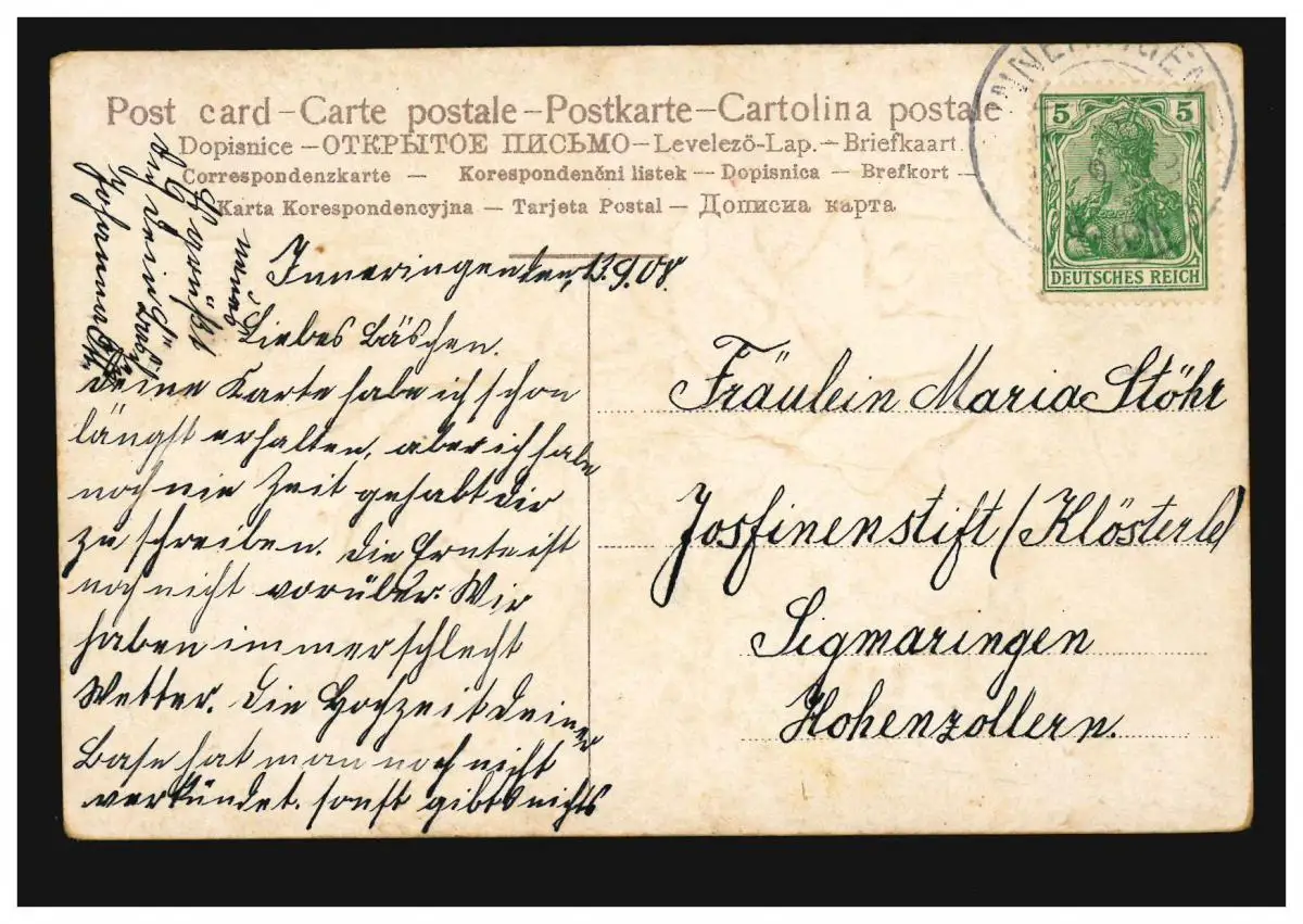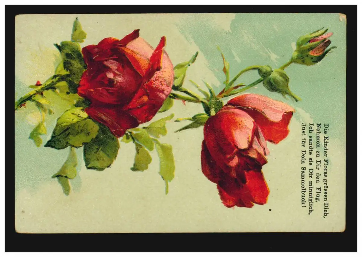 Carte de prédication Poème et Roses rouges, INNERINGEN (HOHENZOLLERN) 13.9.1908