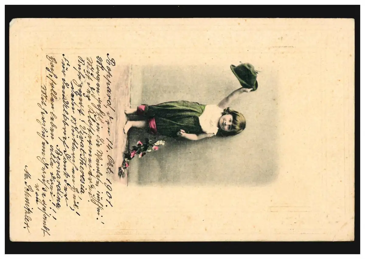Carte de prédilection Félicitations Fille Winkende avec chapeau et fleurs, BOPPARD 14.10.2001