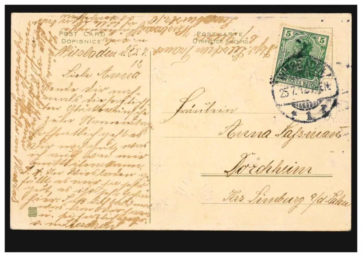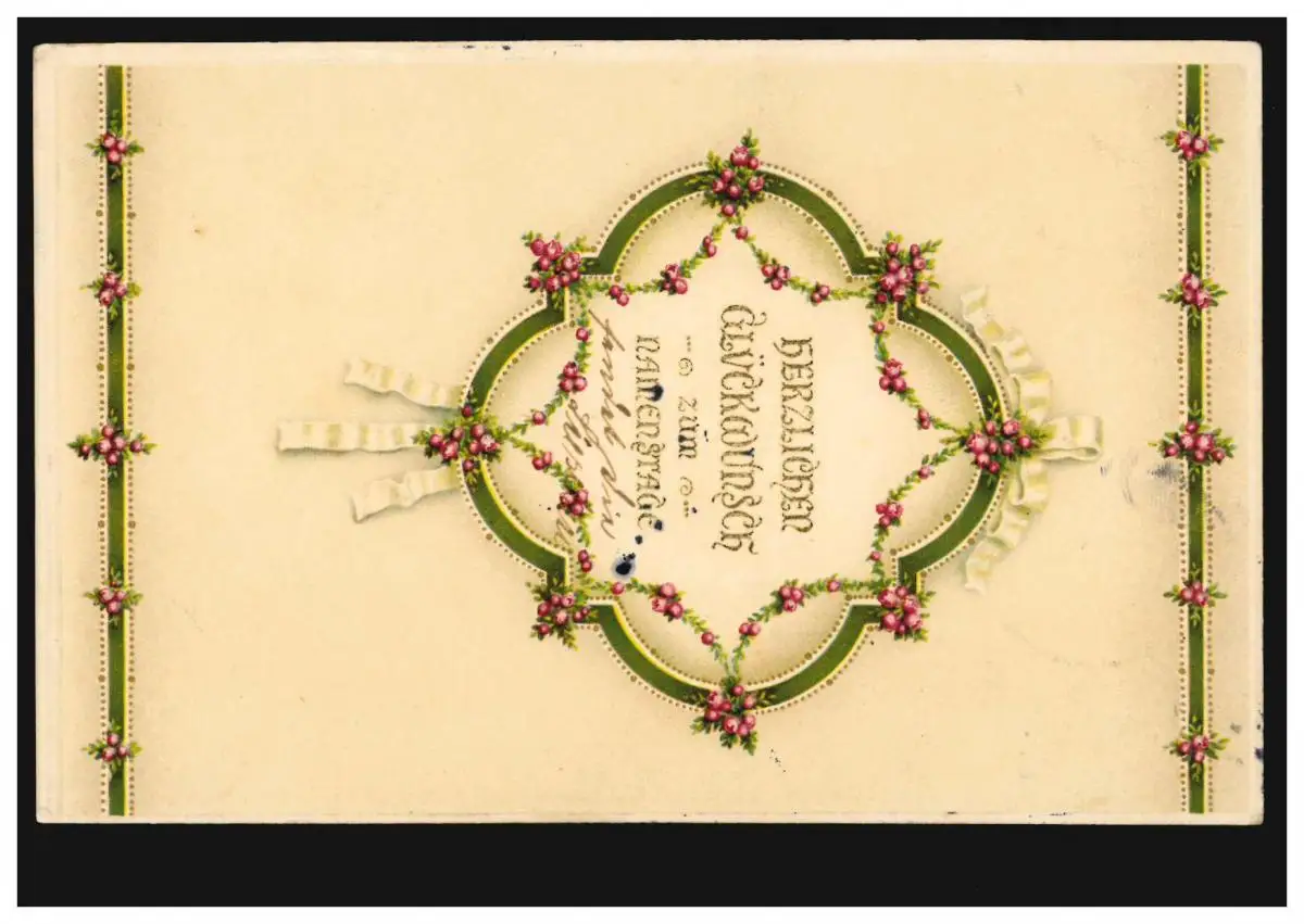 Carte de prédilection Félicitations pour la fête des Fleures, WIESDADE 25.7.1912