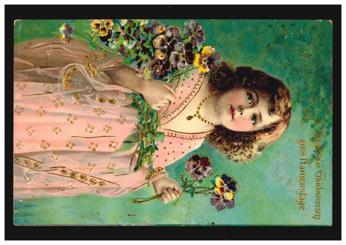 Carte de prédilection Félicitations pour le jour de nom de la fille avec des fleurs, CREFELD 25.11.1910