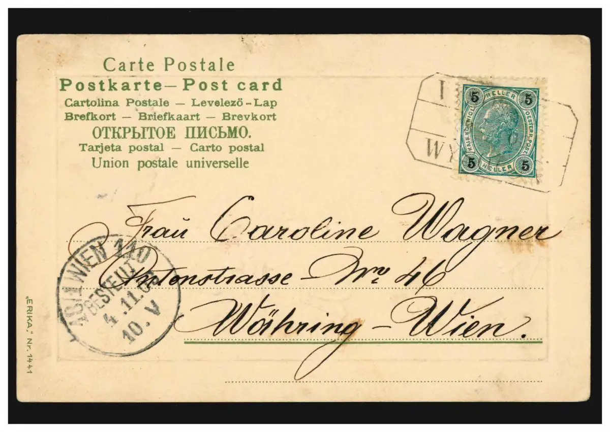 Carte de prédilection Paysage avec pont et fleurs, VIENNE 3.11.1903