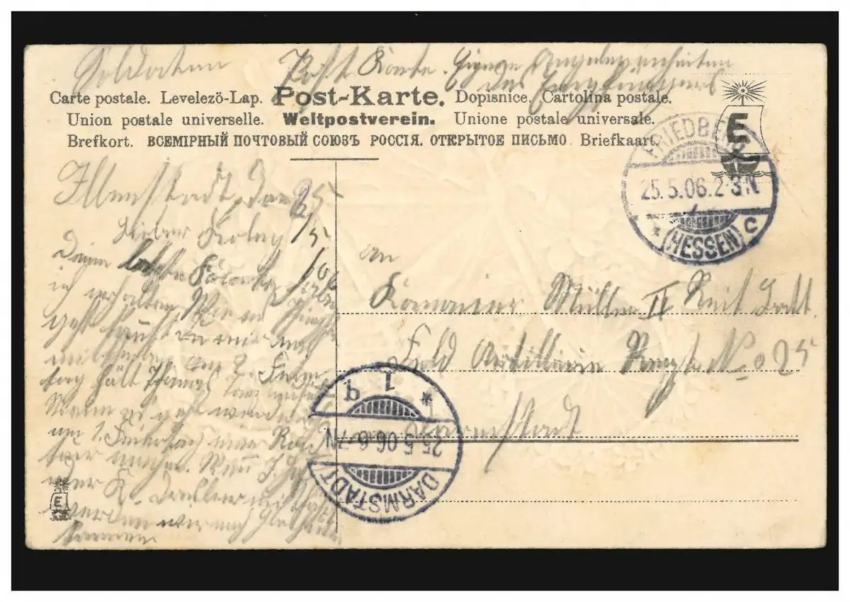 Carte de prédilection Poème Les salutations de printemps sonnent à haute voix / vélo de fleurs, FRIEDBERG 1906