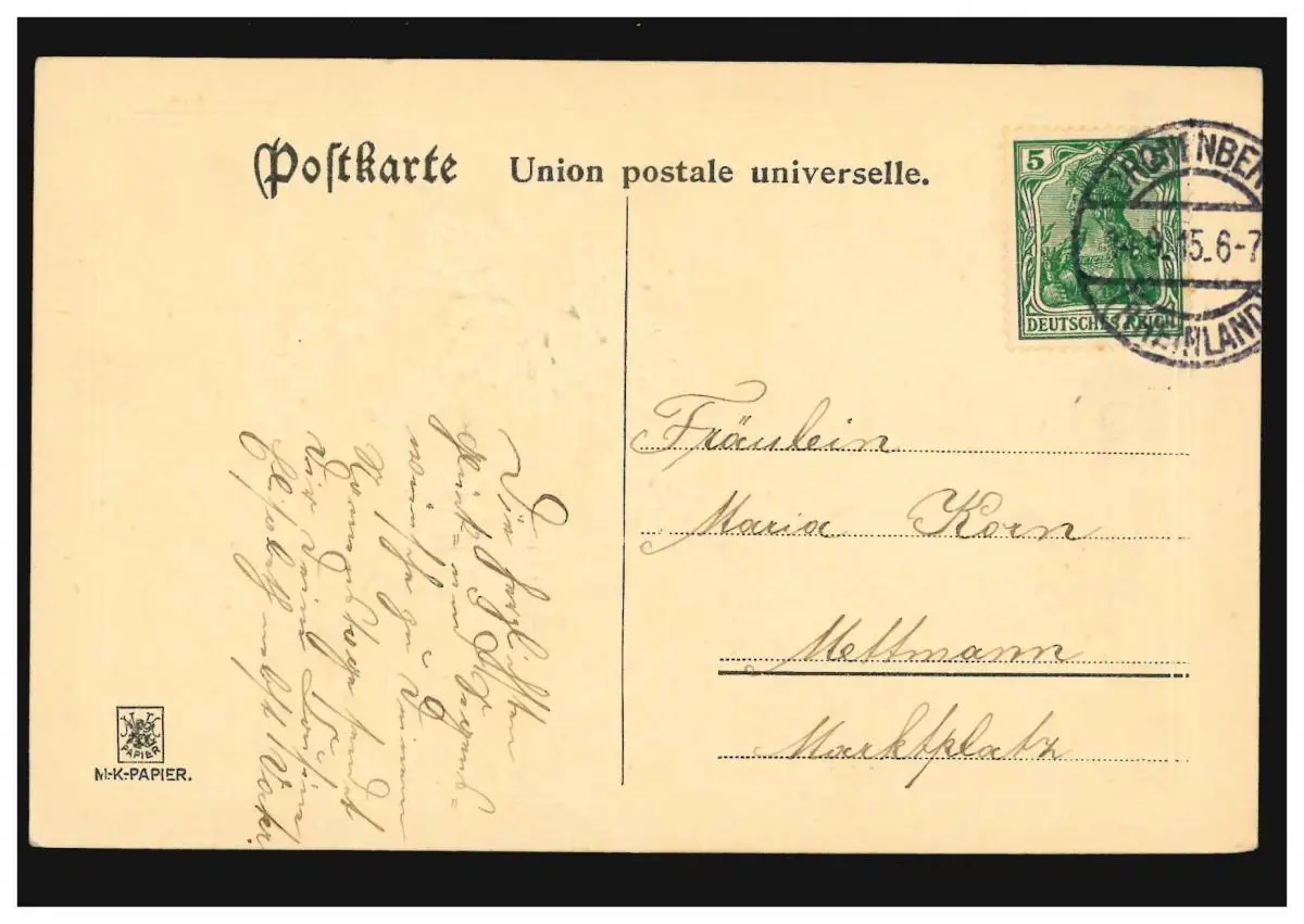 Carte de prénom Jour Blanc Rosen-Girlande, CRONENBERG 14.9.1915