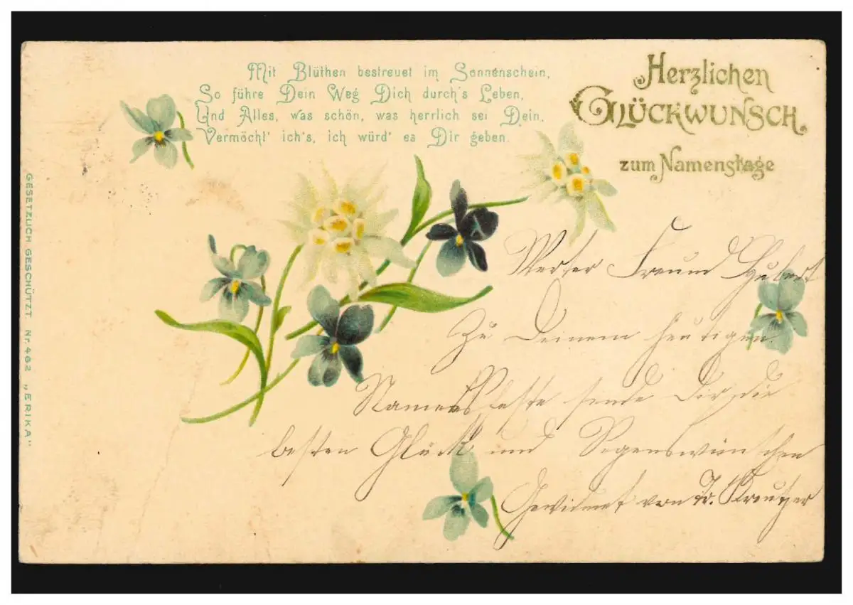 Carte de prénom Jour du poème et des fleurs, HEINSBERG 3.11.1900
