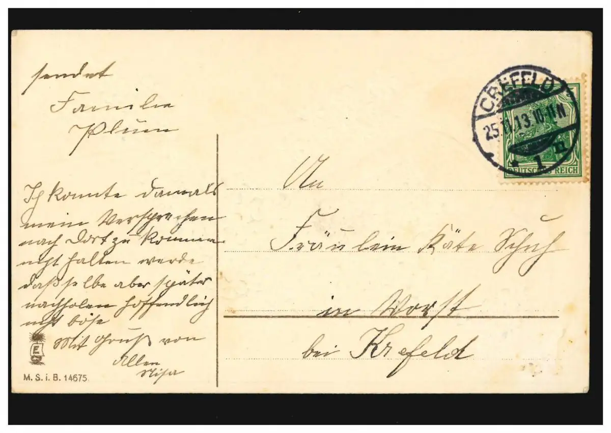 Carte de prénom Style Panier de fleurs avec caserne, CREFELD 25.11.1913