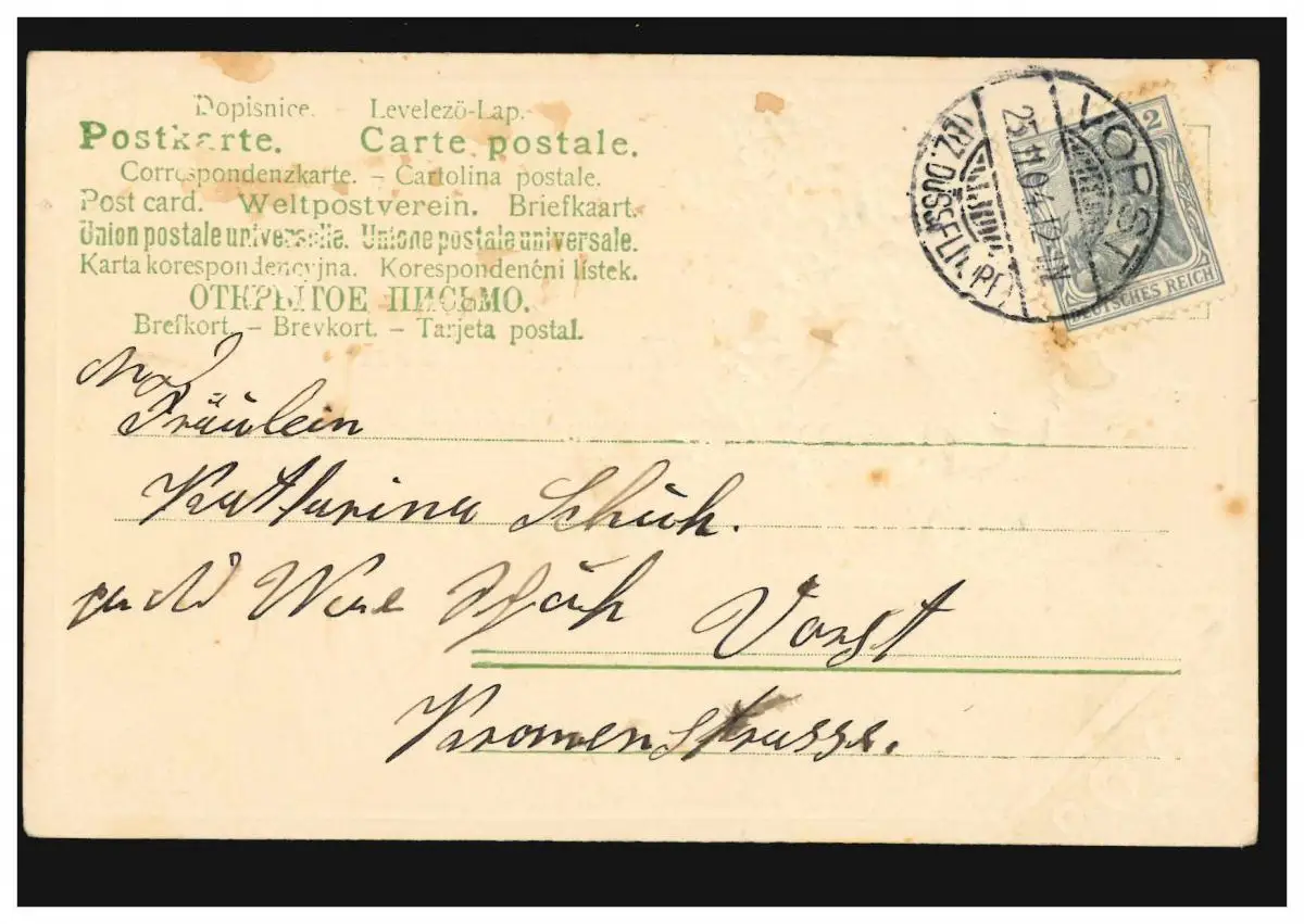 Carte de prénom Vase floral avec fer à cheval et trèfle chanceux, AVANT 25.11.1904
