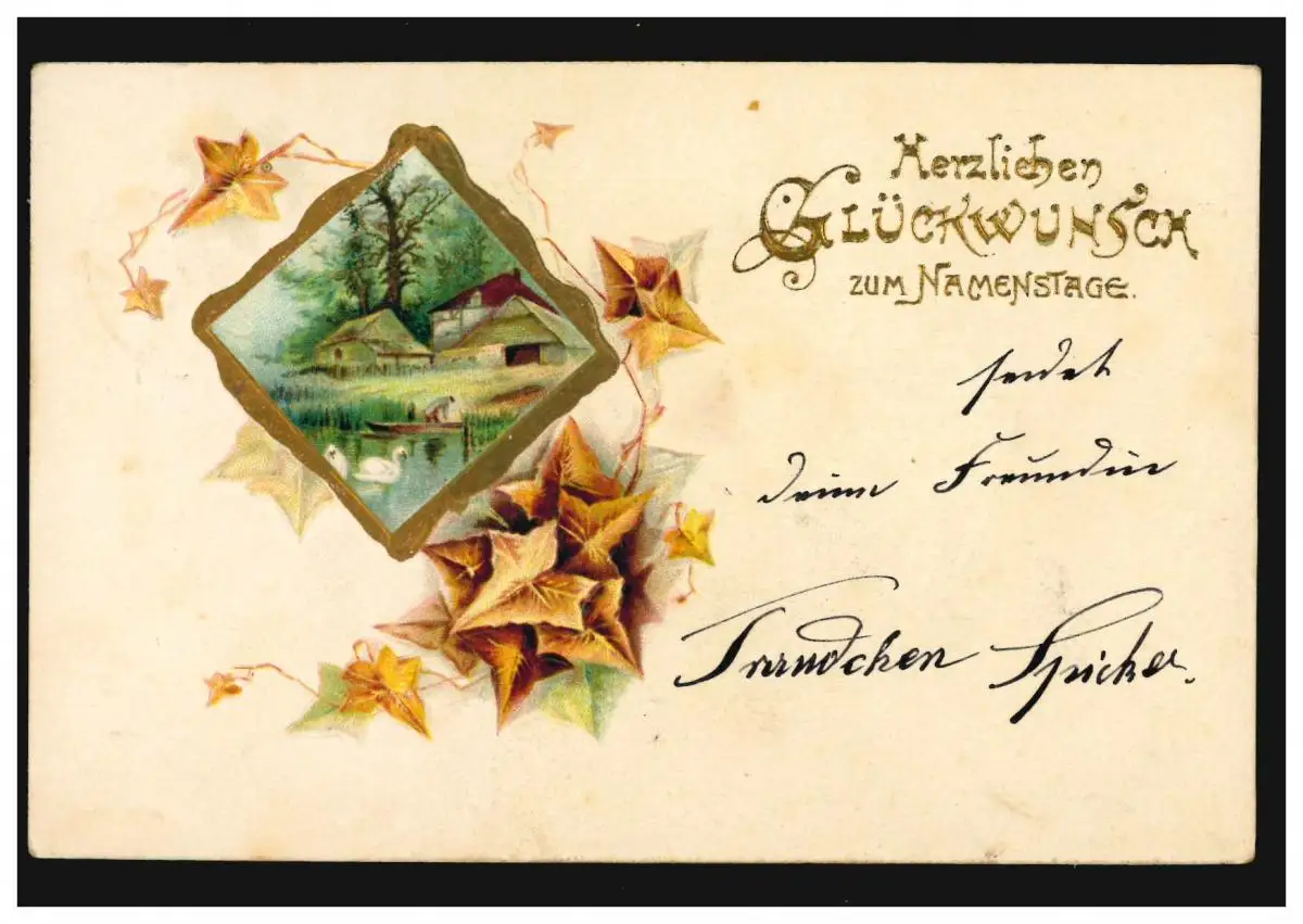 Carte de présentation Félicitations pour la journée de nom Image dans le cadre du lierre, VORST 25.11.1905