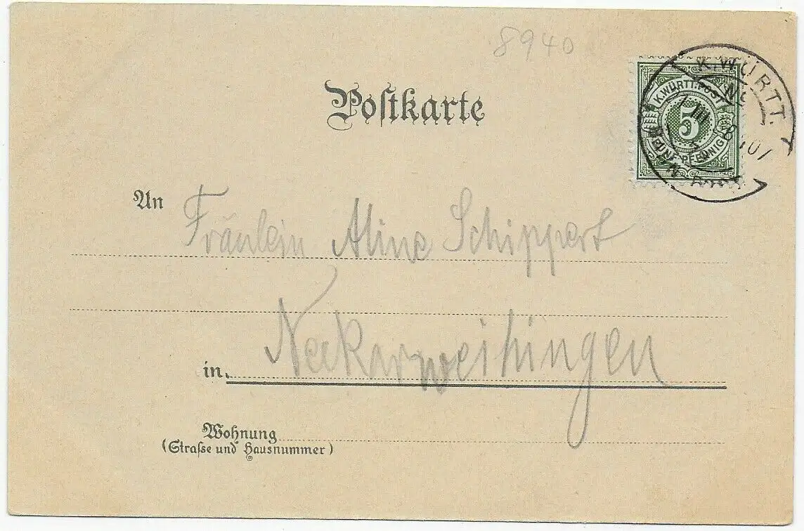 Carte de présentation Salutation de Memmingen, 1879, après Neckarweihingen