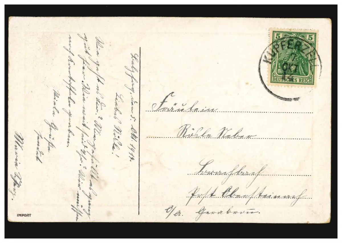 Carte de présentation de la violette en coquille, CUIVRE 7.10.1914