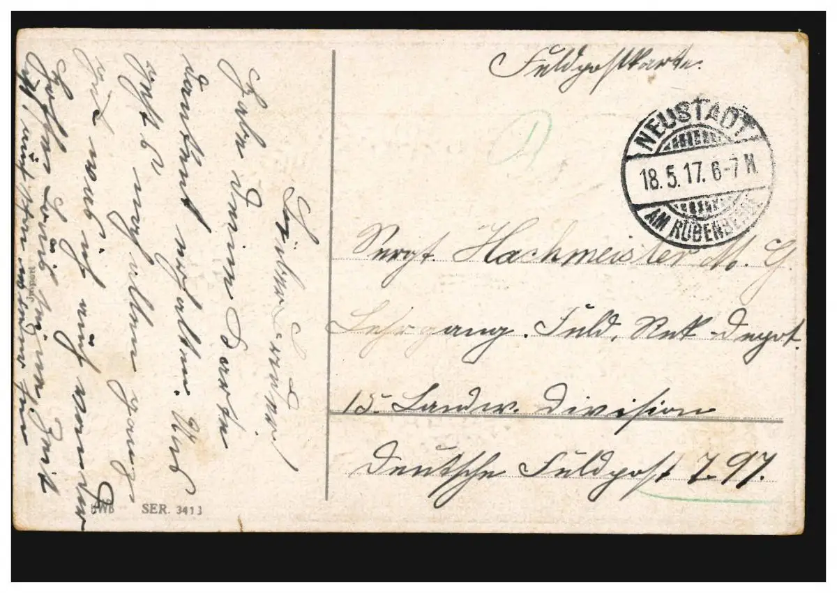 Carte de prévis Pentecôte Pigeons blancs avec moulin à gibier NOUVEAUTARD SUR LA MONTAGNE 18.5.1917