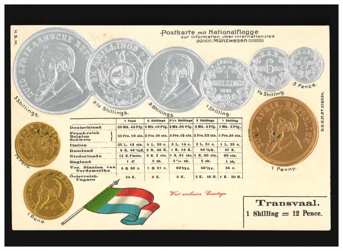 Carte de prévis Transvaal Shillings Pence Pond Monnaie Pavillon de monnaie, non utilisé