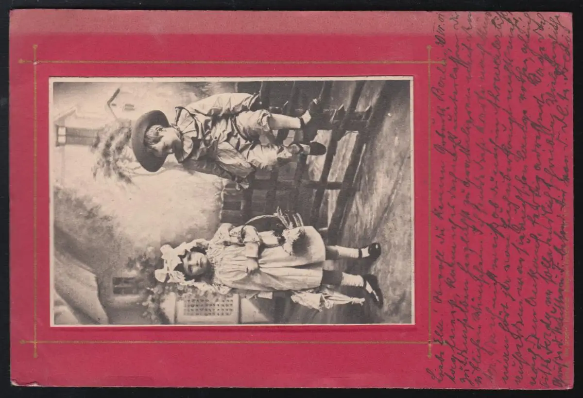 Carte de prévisage Enfants en festivité avec capot et chapeau, BERLIN NW 7 d 20.6.1901