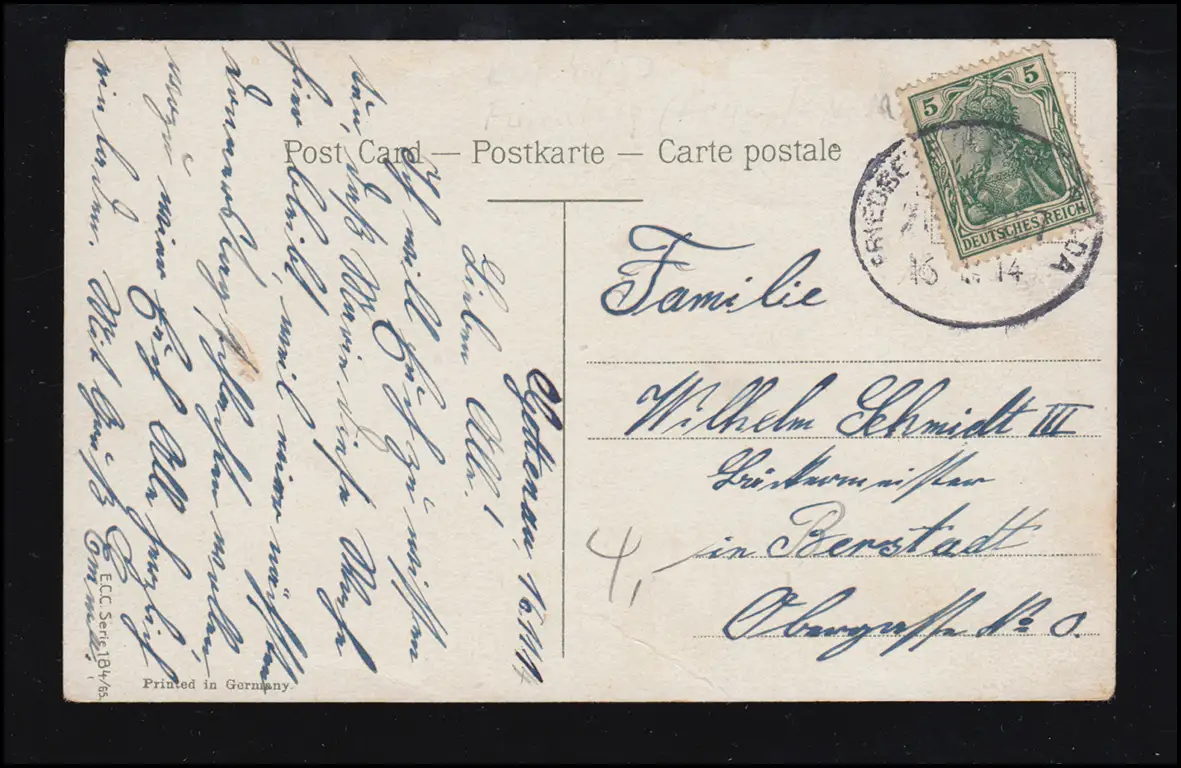 Epic Drama Poem Poèmes / Tampon de poste ferroviaire FRIEDBERG (HESSEN) - NIDDA 16.11.1914 Vérification: original Référence produit: 00000000032098