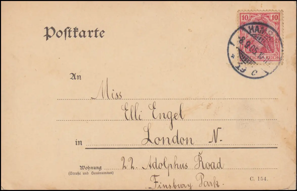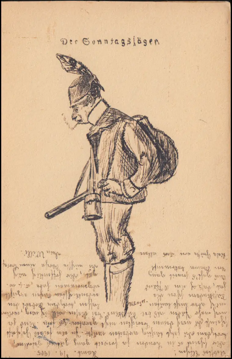 Carte de vision dessinée Le Chasseur du Dimanche, HAMBURG 8.9.1905