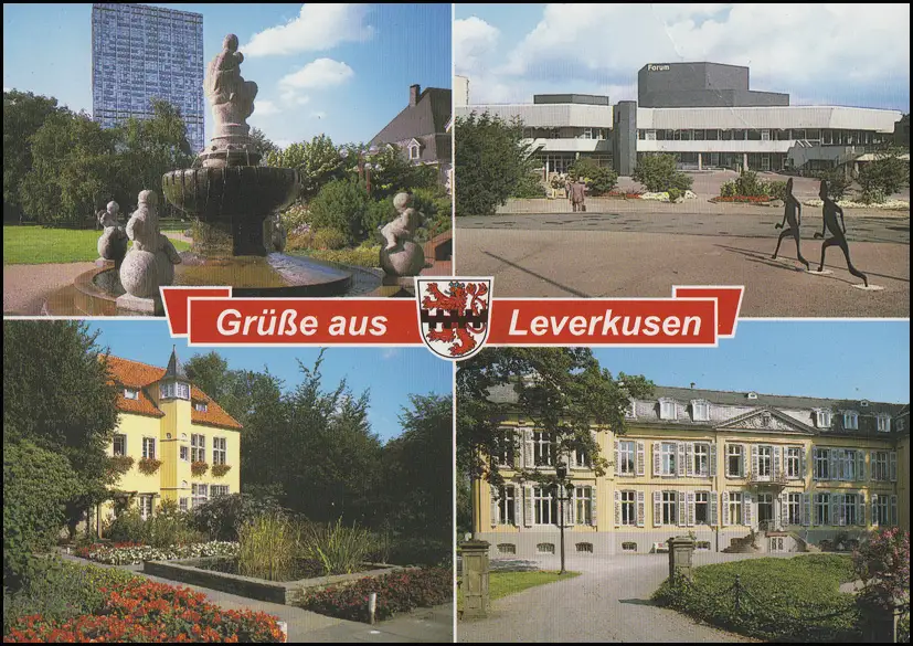 Carte de visite: Salutation de Leverkusen avec 4 vues comme carte postale aérienne en Suède Examen: original Référence produit: 00000000027449