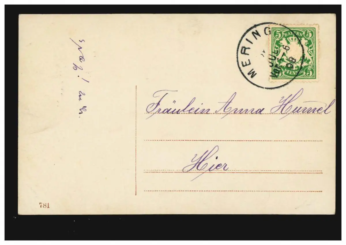 Carte de visite Nom de la fille avec capot parapluie Panier de fleurs, MERING 1908
