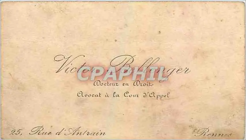 Carte de visite Victor Bellenger Rue d'Antrain Rennes