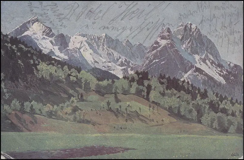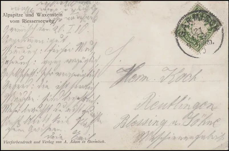 Carte de vue Alpspitz et Waxenstein de la Reiseseweg, EF 5 Pf GARMISCH 21 2.10