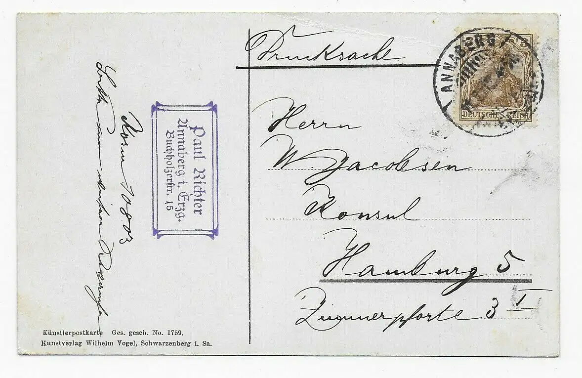Carte de vue Annaberg/Sachsen vers Hambourg, vers 1905