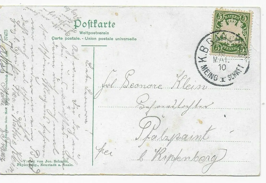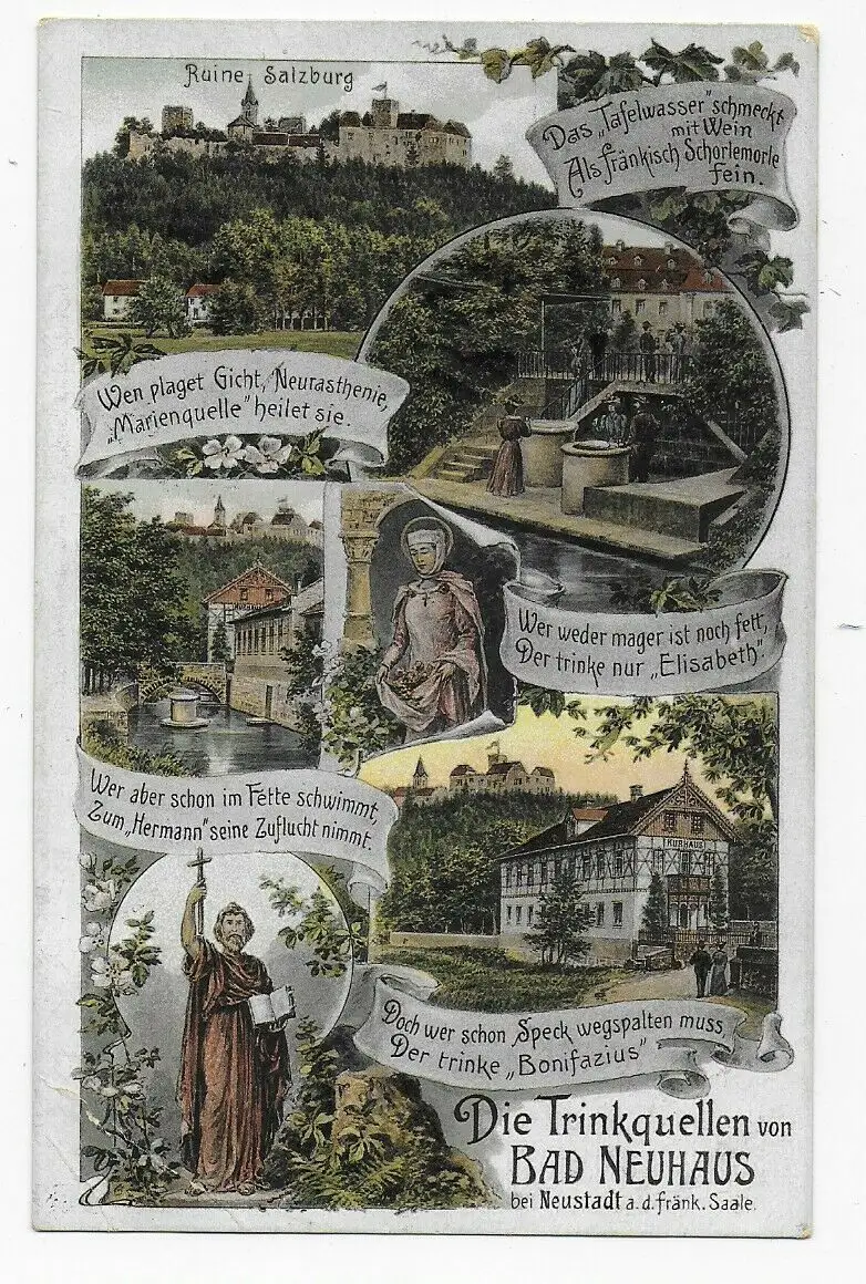 Carte de vue Bad Neuhaus 1910 près de Bad Neutstadt a.d.fränk. Saale vers Palatinatpaint