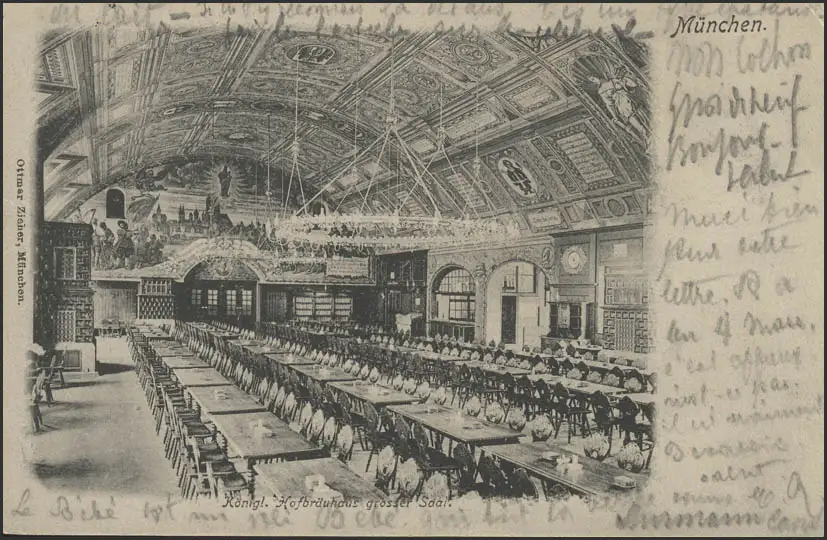 Carte de vue Bavière: Munich - Hofbräuhaus, Munich 4.11.1904 n. France