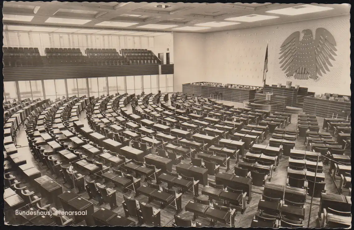 Carte de vue Bonn am Rhein: Bundeshaus, Planarsaal, SSt BONN Adenauer 5.1.1956