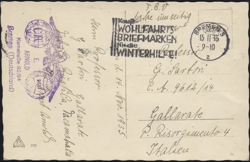 Carte de vue Brême Vue d'ensemble, MiF BREMEN 5 - 15.11.35 n. Gallarate/Italie