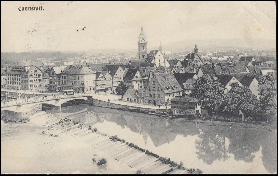 Carte de vue Cannstatt - Panorama, timbre en cercle STUTTGART 26.6.1907