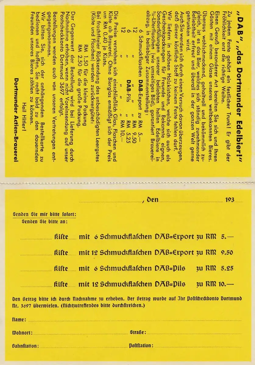Carte de vue Dortmunder Aktien Brauerei avec carte de commande
