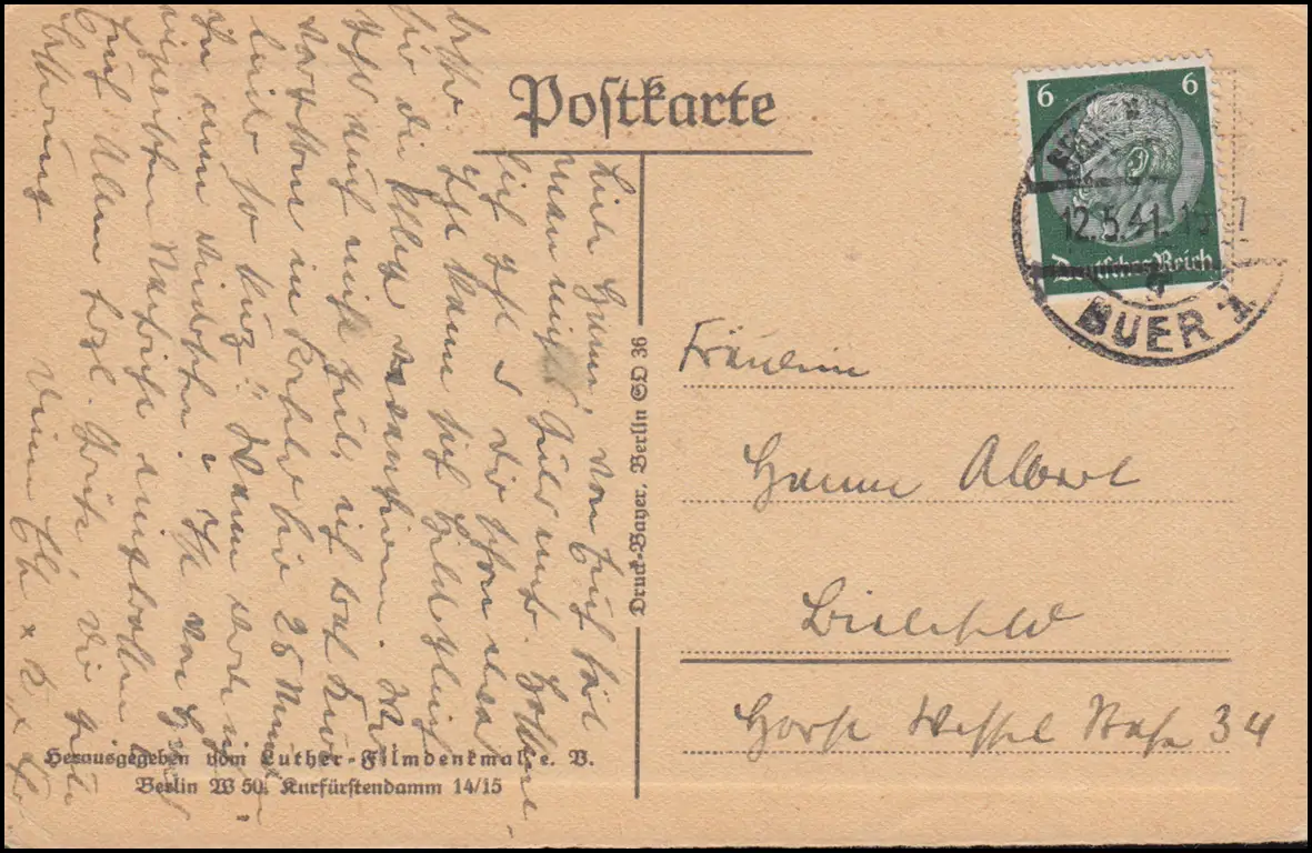 Carte de vue Dr Martin Luther, d'après Lukas Cranach GELSENKIRCHEN-BUER 12.5.1941
