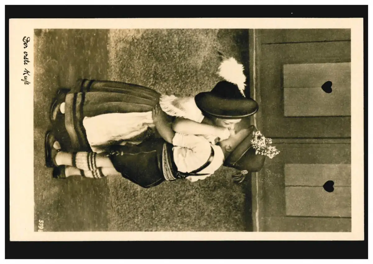 Carte de vue Enfants en costumes: Le premier baiser ! OBERSTDORF vers 1952