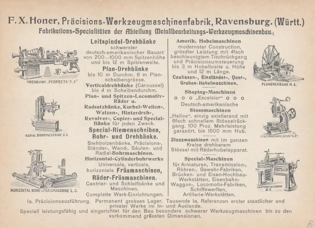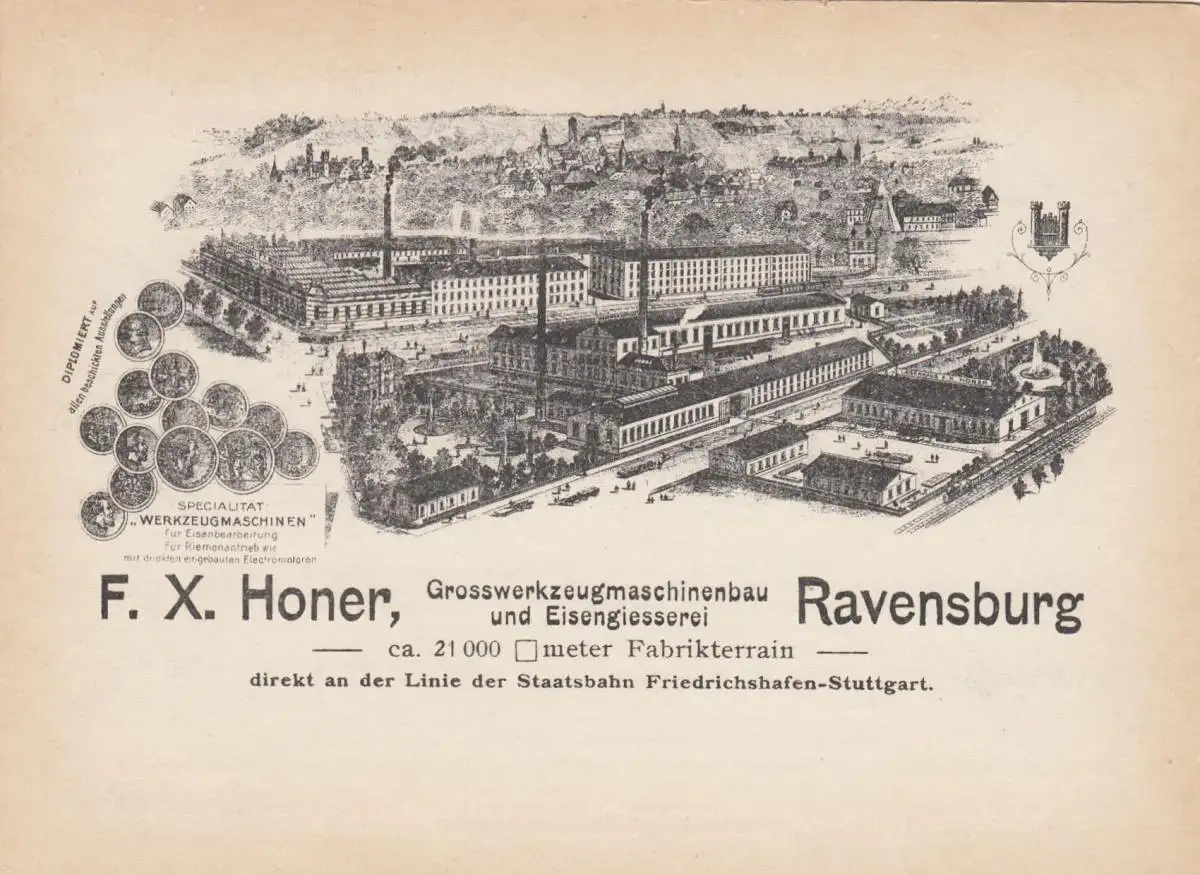 Carte de vue Fa. Honer, Construction de machines à coudre Ravensburg