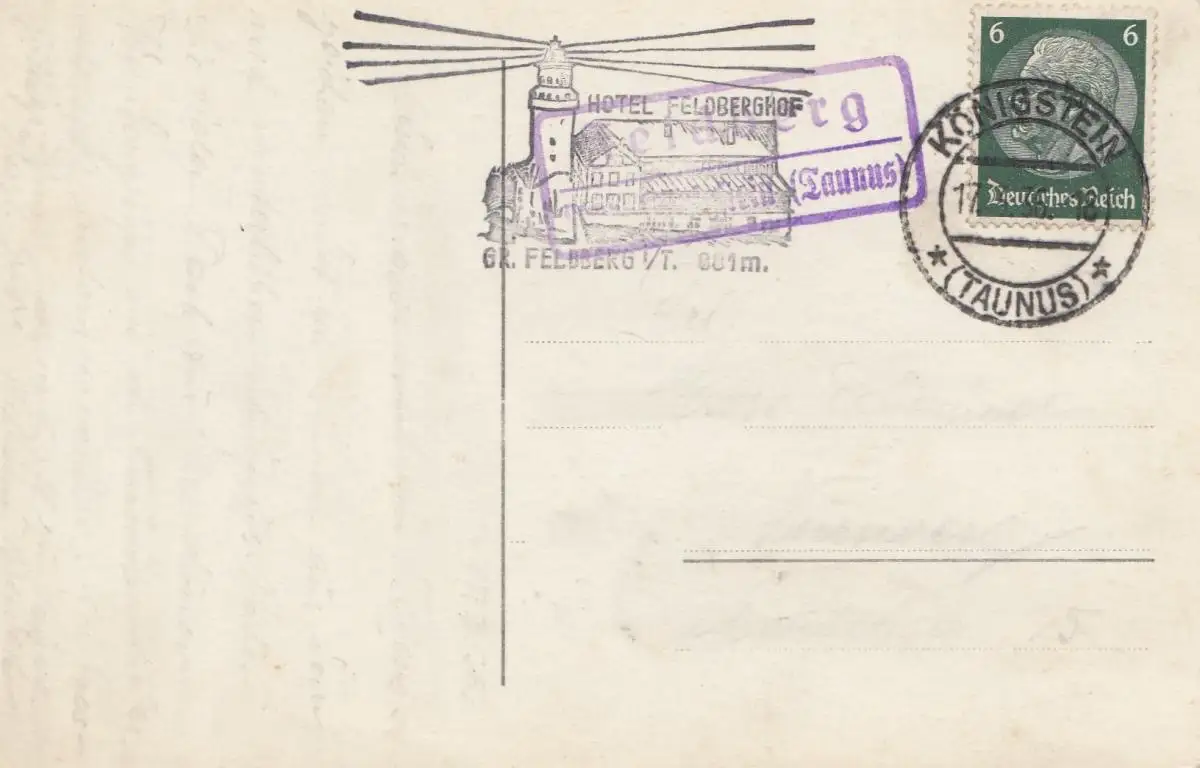 Carte de vue Feldberg/Taunus: phare - Königstein 1936