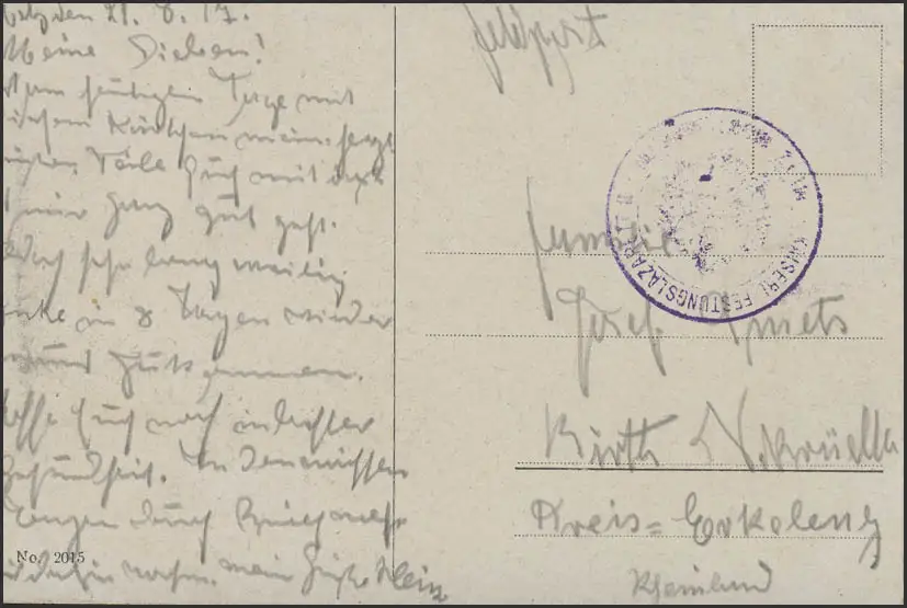 Carte de vue Feldpost Metz Totenbrücke Hospitalité de la forteresse Birth/Niederkrützen