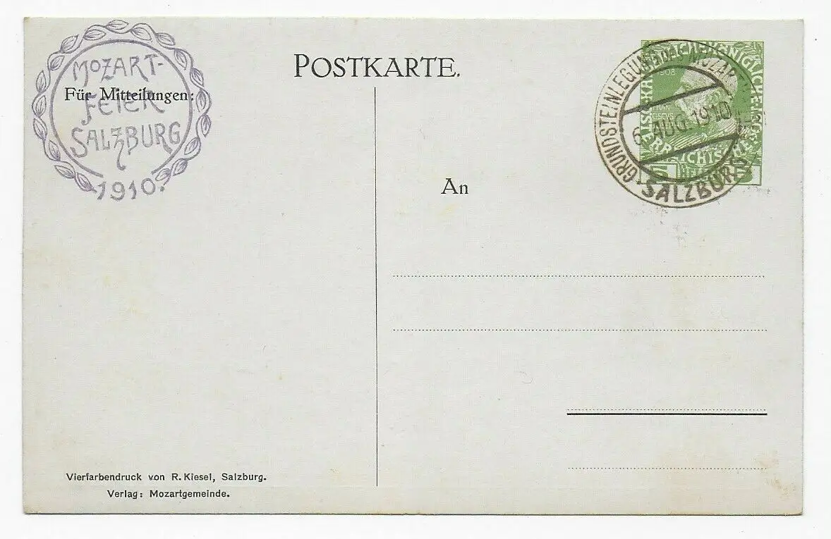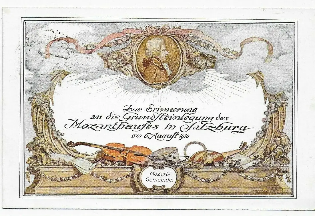 Carte de vue Fondement Mozarthaus 1910 à Salzbourg avec timbre spécial