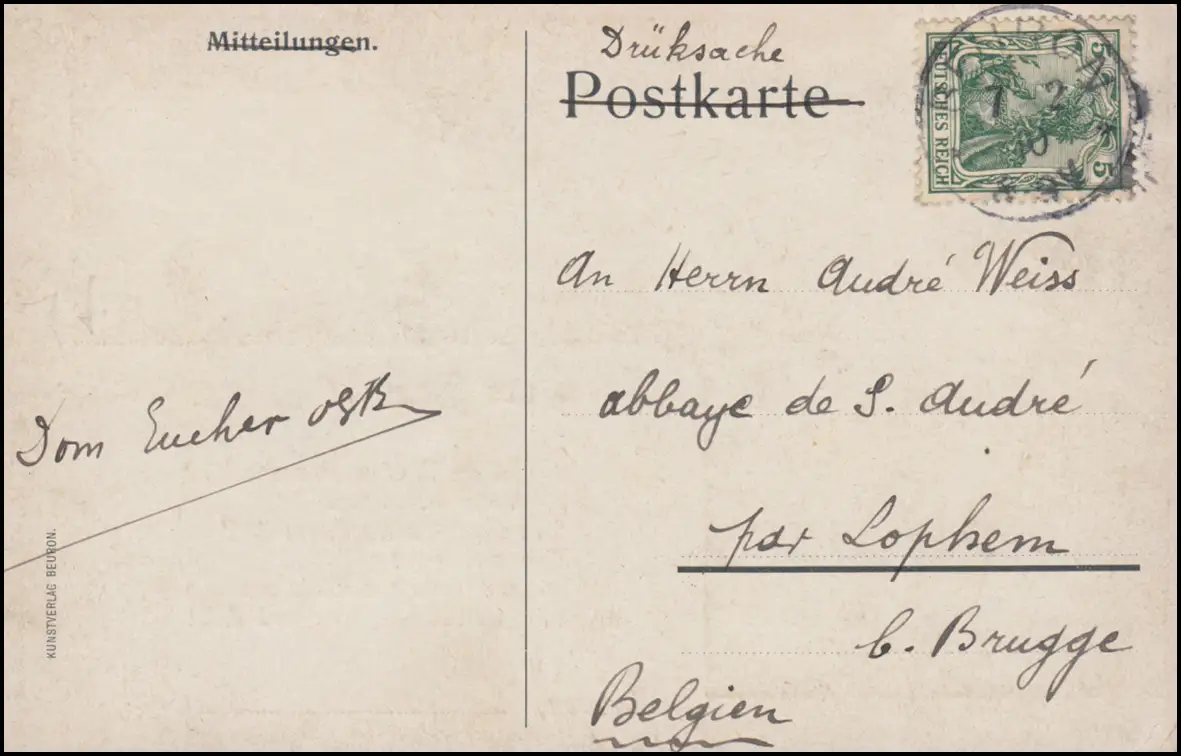 Carte de vue Graus de Beuron ..., avec poème, BEURON 7.2.1910 vers la Belgique