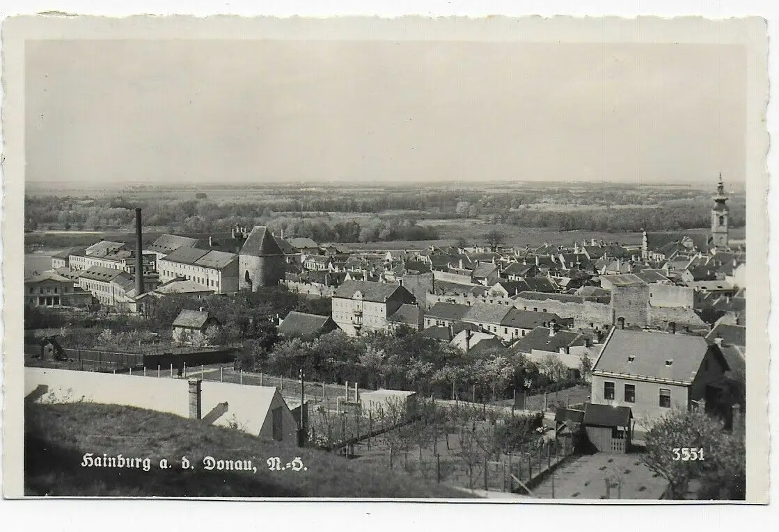 Carte de vue Hainburg a.d. Danube avec cachet spécial 1938 vers Bratislava