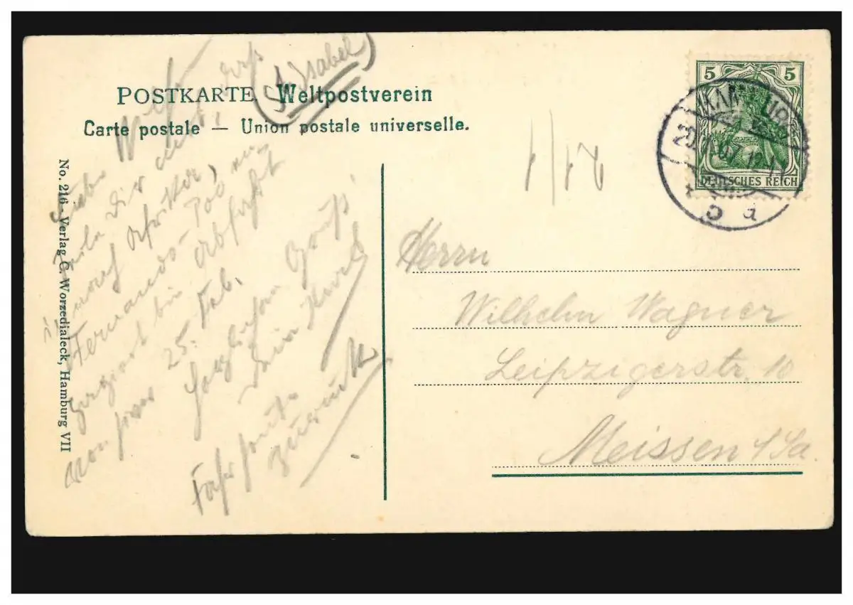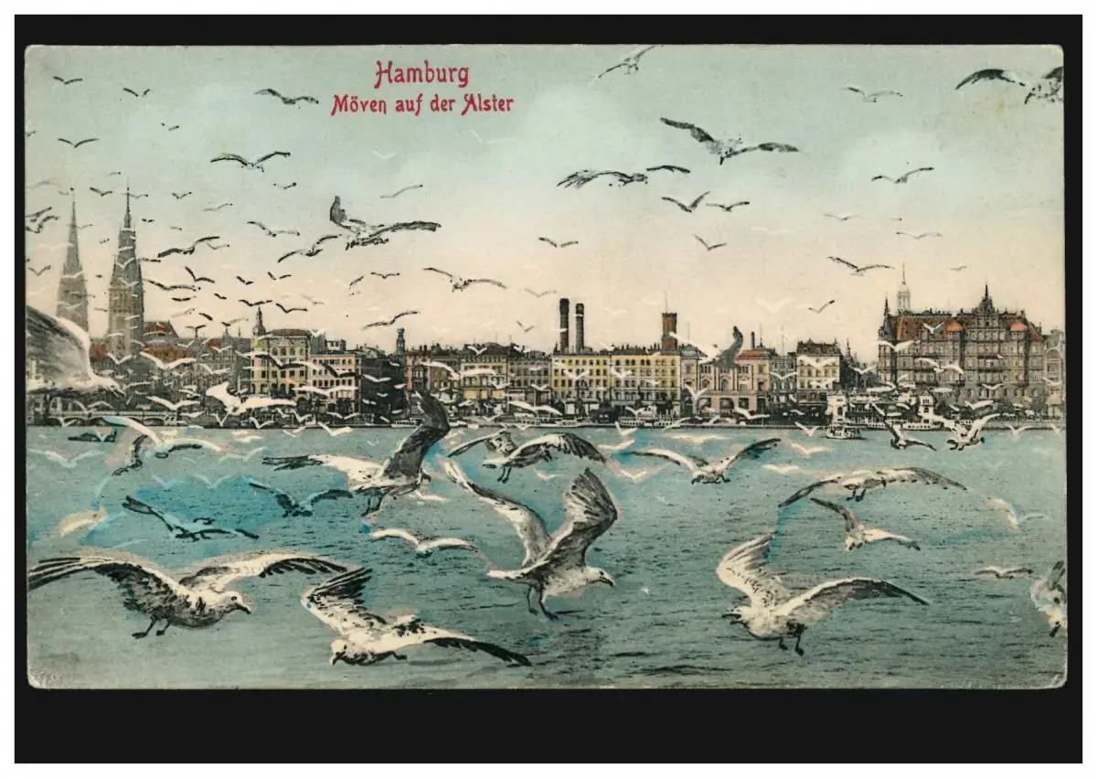 Carte de vue Hambourg: Möwen sur l'Alster, HAMBURG 5 a 20.1.1907