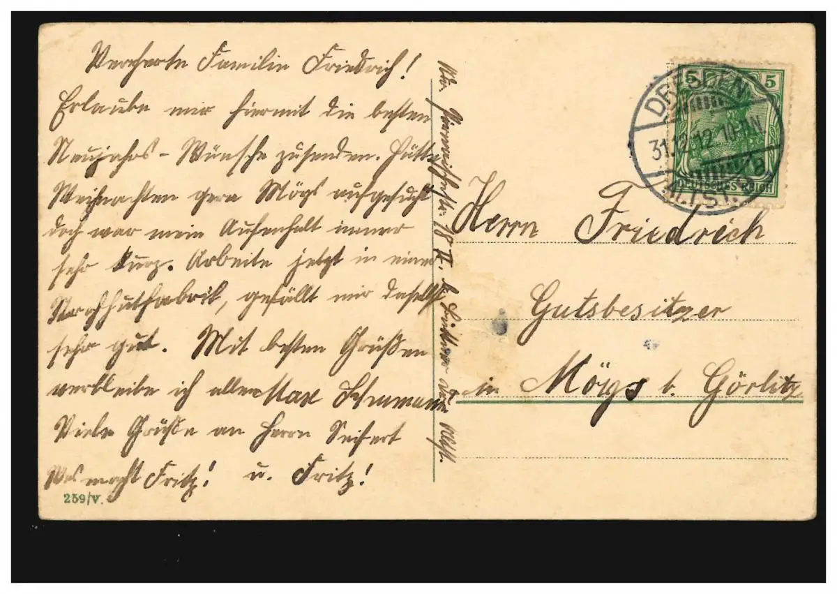 Carte de vue Jeune désire la chance des filles au Nouvel An, DRESDEN 31.12.1912