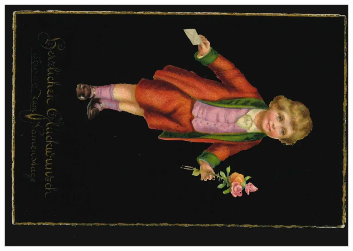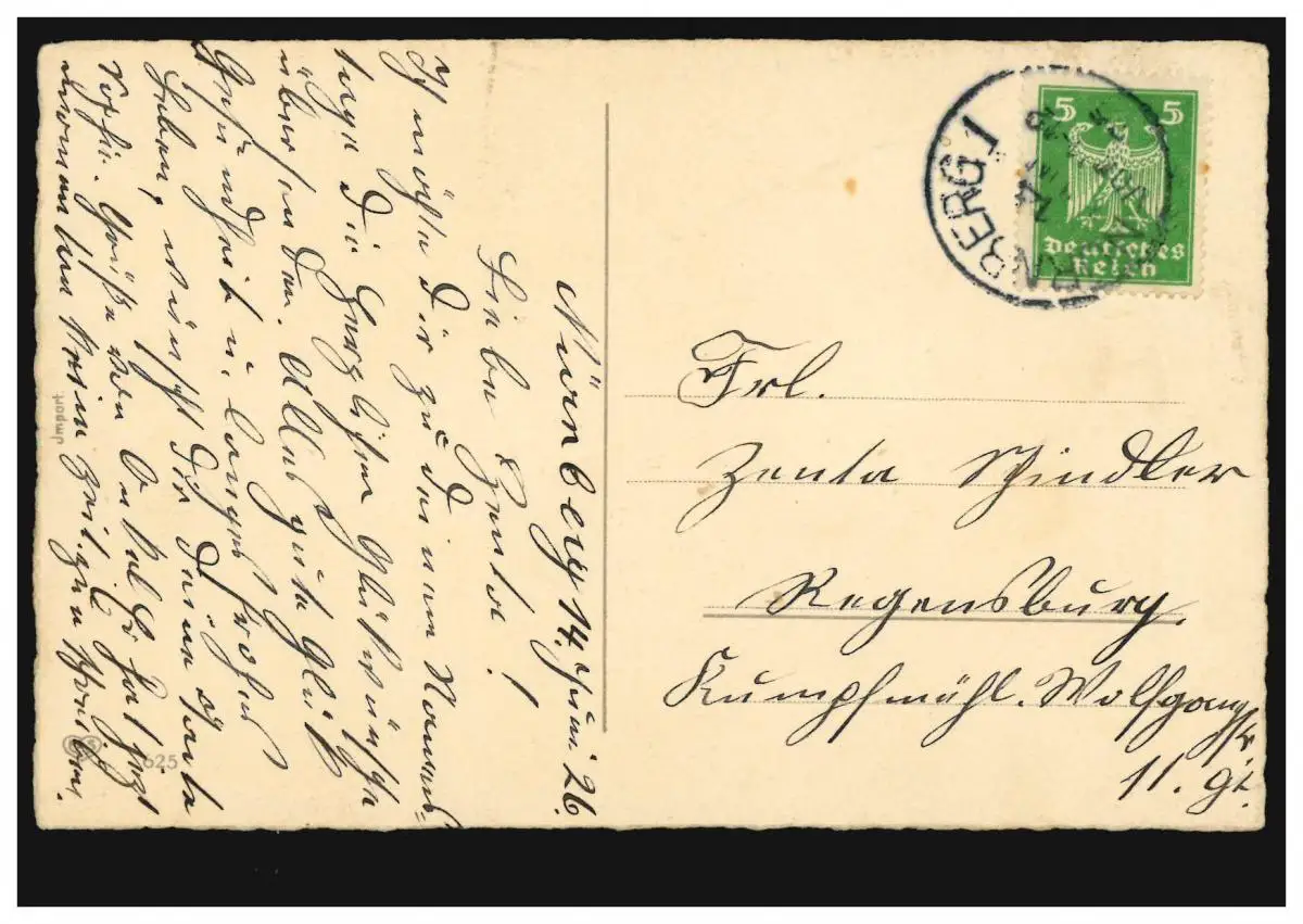 Carte de vue Jour de nom Jeune avec des roses et des cartes de félicitations, NÜRNBERG 14.6.26