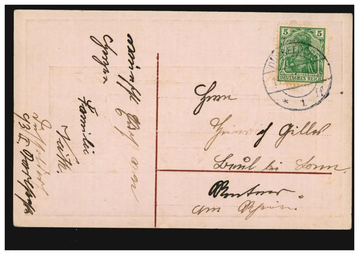 Carte de vue Jour du nom Représentations Art Nouveau, DÜSSELDORF 1 f 13.7.1914