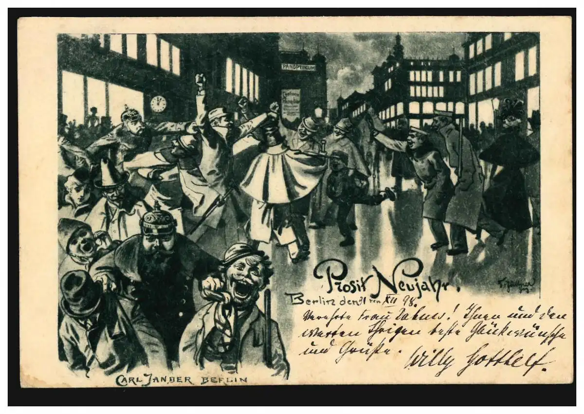Carte de vue Nouvel An Carl Zander Berliner accueille la nouvelle année, BERLIN 1.1.99