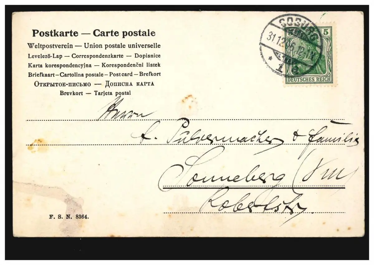 Carte de vue Nouvel An Dorfidylle Femme avec bois de riz, COBURG 31.12.1906