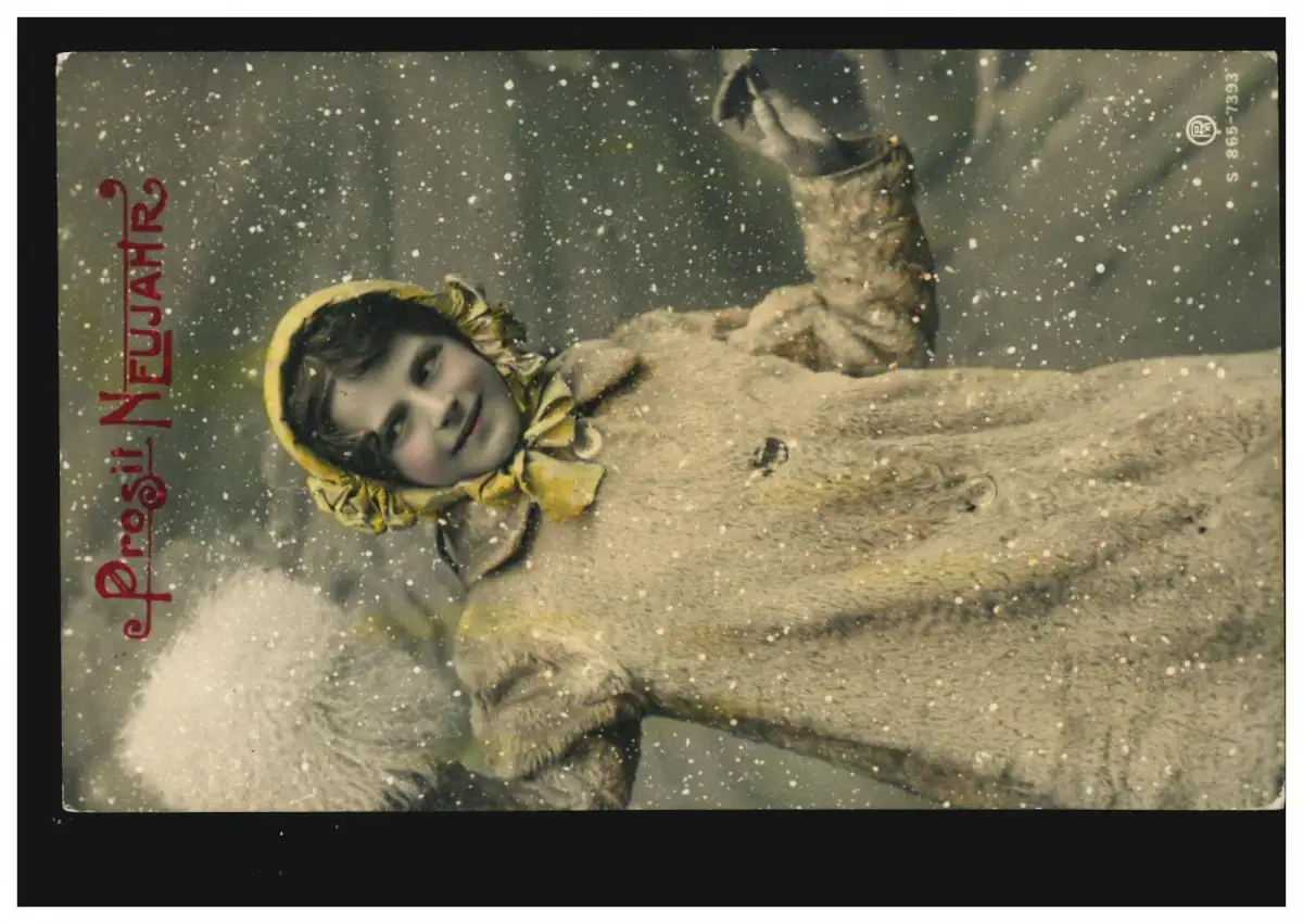 Carte de vue Nouvel An Fille avec manteau d'hiver et muff, HATTINGEN 1.1.2001