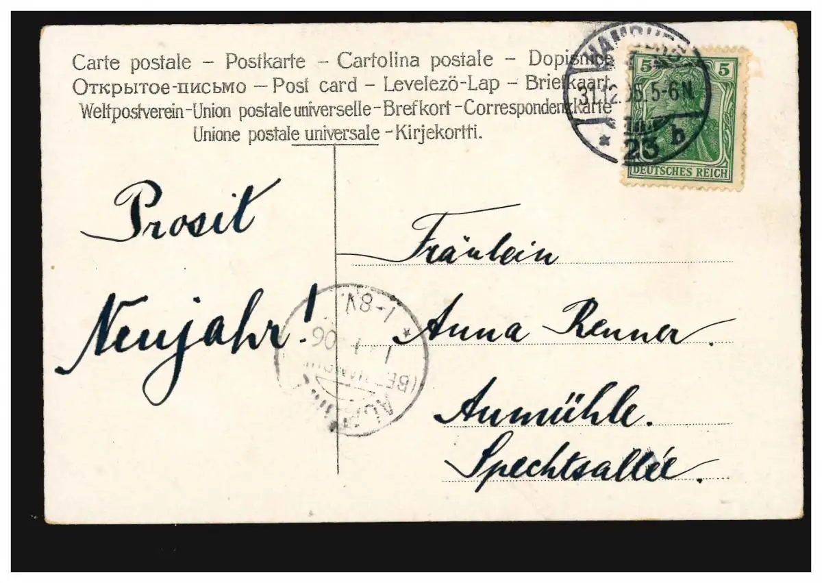 Carte de vue Nouvel An Janvier 31 Jours "1" 365 Jours heureux! HAMBURG 31.12.1905