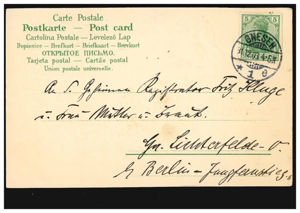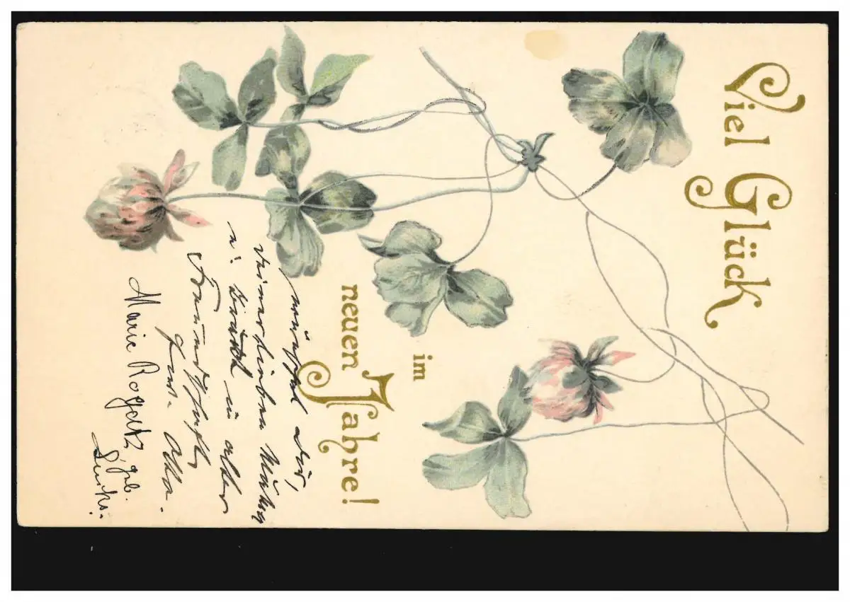 Carte de vue Nouvel An Klee avec félicitations, GNESEN 31.12.1903