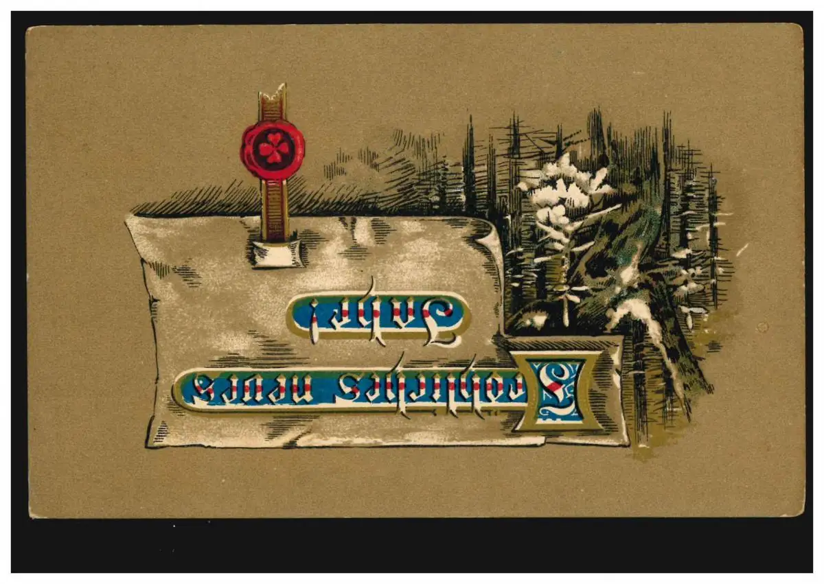 Carte de vue Nouvel An Lettre avec sceau de trèfle chanceux, NOUVEAUTÉ AU MONTAGE Rüben 1916