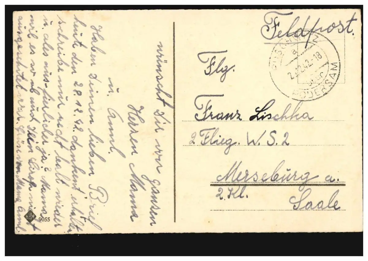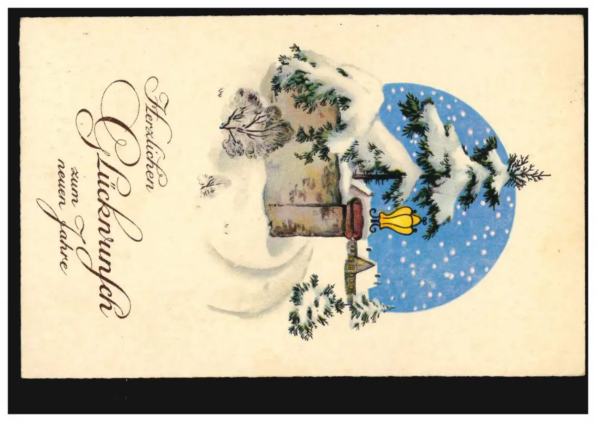 Carte de vue Nouvel An Paysage hivernal, Feldpost PUSCHWITZ sur PODERSAM 1942